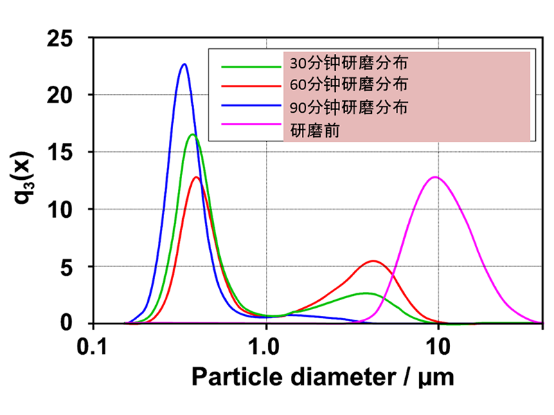 ![]() 相比傳統(tǒng)磨機,即使在相同的平均粒徑,它可以得到集中的粒度分布。 |